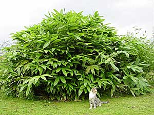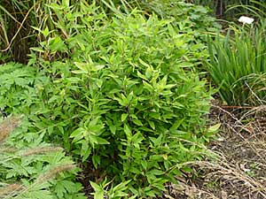 Rechtopgaande groene stengels die aan de zonkant donker gevlekt zijn. De plant is een sterke woekeraar en is goed winterhard.